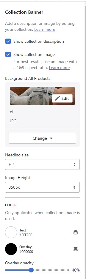 For each Collection, you can upload an image collection > Image Collection Banner will show