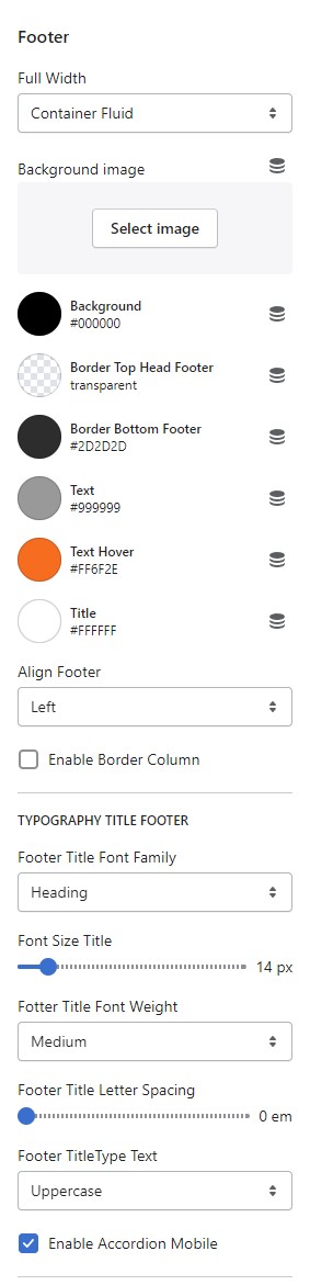 Typography Title Footer, Font Family, Font Weight, Font Size, Letter Spacing, Text Style