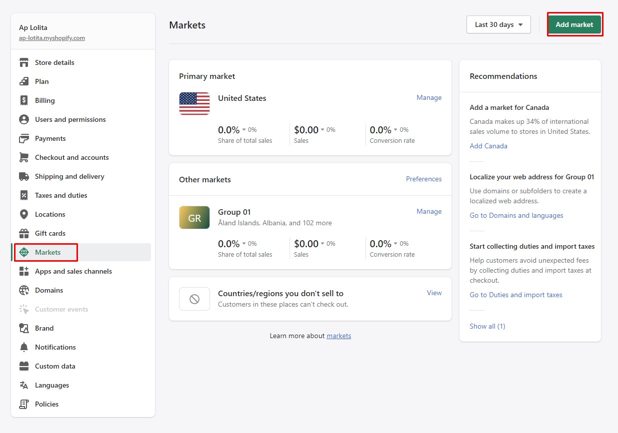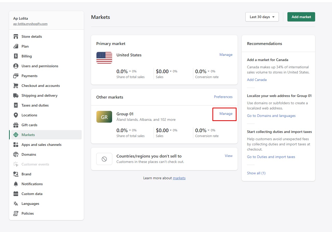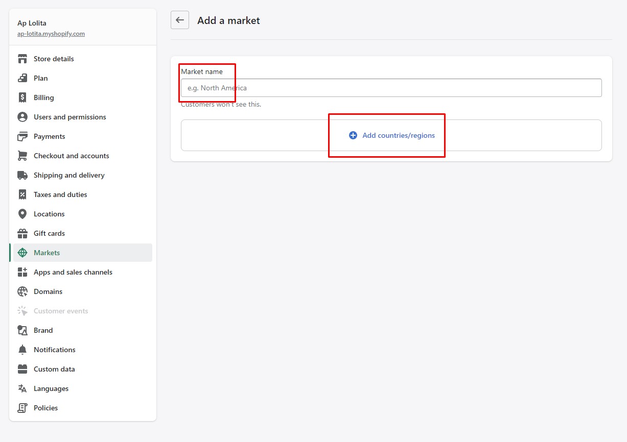 3. Set group Name, select Add countries/ regions and select the countries/ regions you want.