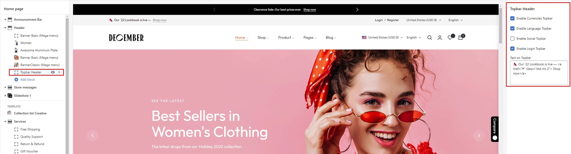 But If you want change color for Top Bar Header => Click Header => Scroll to TOPBAR