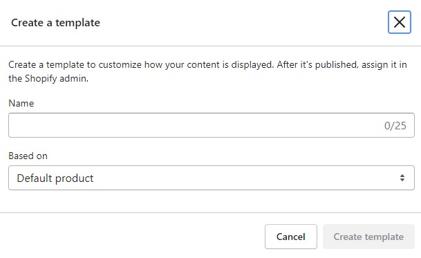 Choose the suitable value in the Based on dropdown, then select Create template.