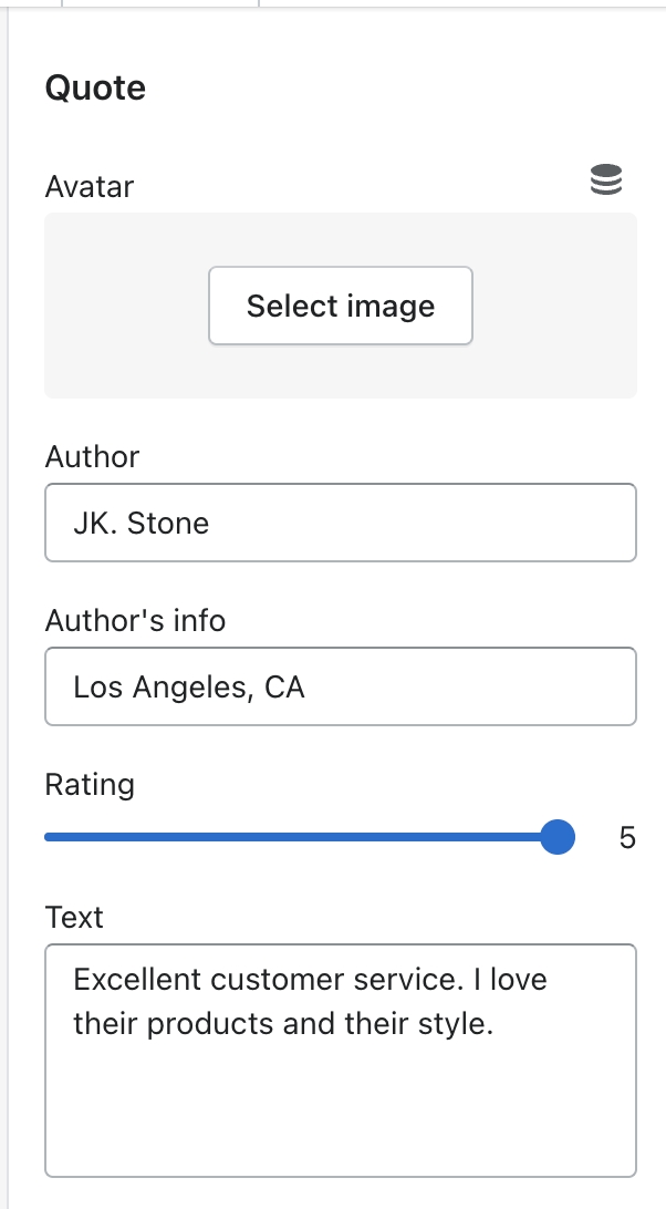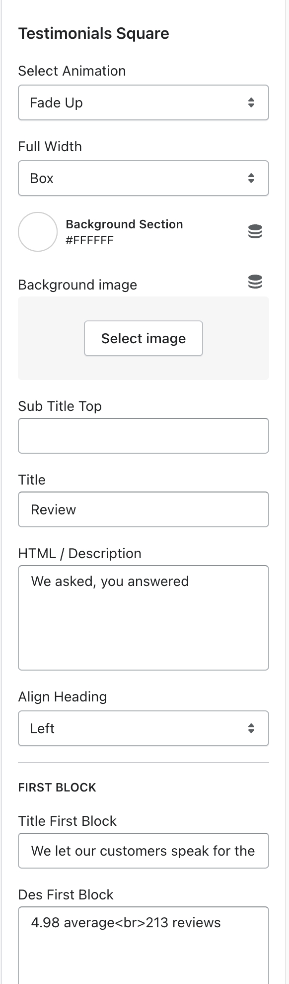In Testimonials SquareSection > Add Quote